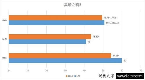黑暗之魂3测试,由于锁60帧,1080P测不出性能差别,所以画面设置成2K分辨率默认最高特效,平均帧数RX570 4G领先了2%。