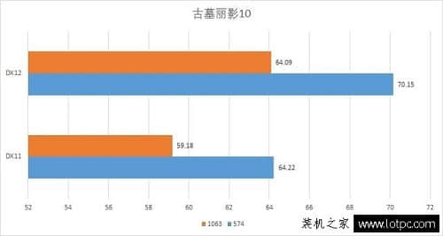 首先是古墓丽影10,RX570 4G在DX11下是64.22帧,DX12下是70.15帧。